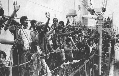 1982年7月26日,西德營(yíng)救船“卡普-阿納穆爾”輪駛?cè)肓怂瓉硗2吹臐h堡港,在這艘經(jīng)改裝的貨輪上載有285名越南船民。 這是“卡普-阿納穆爾”輪執(zhí)行的最后一次營(yíng)救任務(wù)。3年來,該船帶著一個(gè)由德國(guó)醫(yī)生急救委員會(huì)派遣的醫(yī)療小組,長(zhǎng)期巡弋在南中國(guó)海上,總共救起了9500名難民。據(jù)估計(jì),約有高達(dá)80%的越南船民在海上成為海盜活動(dòng)的受害者,有關(guān)船民遭到搶劫、兇殺、拐賣和強(qiáng)奸的報(bào)道屢見不鮮。這些船民仍在陸續(xù)抵達(dá)世界各地的許多港口。