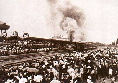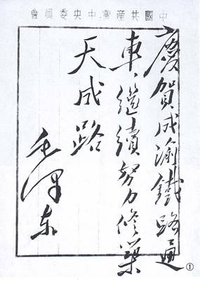 成渝鐵路開工前,鄧小平與有關(guān)領(lǐng)導(dǎo)同志共同研究建路方案 毛澤東為成渝鐵路通車題詞 第一列客車到達(dá)成都車站