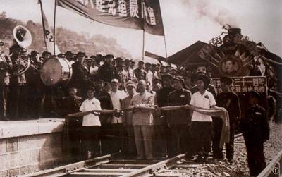 1952年6月13日成渝鐵路全線竣工,舉行通車典禮,滕代遠(yuǎn)(曾任鐵道部部長)為通車剪彩