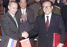 俄羅斯總統(tǒng)普京與中國國家主席江澤民