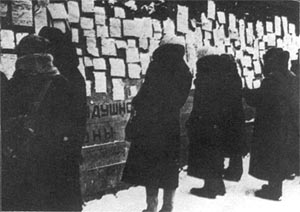 墻上貼的都是貴重物品換食物的啟事。最初 一架名牌鋼琴還能換幾片黑面包,到1941年 底,就再也見不到這些啟事了
