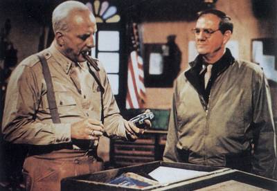 《巴頓將軍》劇照 電影《巴頓將軍》根據(jù)l-法拉戈《巴頓-艱難與勝利》和o-布萊特雷《一個士兵的故事》改編,由美國“二十世紀(jì)福斯”公司1970年度攝制出品,編。焊ダ饰魉-科普拉愛德蒙-諾斯,導(dǎo)演:小弗蘭克林-夏夫納,主演:喬治-斯科特(飾巴頓)卡爾-馬汀(飾布萊特雷)。1970年7月上映,榮獲當(dāng)年奧斯卡第四十三屆奧斯卡金像獎最佳影片、最佳導(dǎo)演、最佳男主角、最佳原著劇本、最佳美術(shù)設(shè)計與陳設(shè)、最佳剪輯、最佳錄音等獎項。 《巴頓將軍》是一部傳記故事片,敘述“美國歷來的軍事將領(lǐng)中最有個性的人物”--巴頓在第二次世界大戰(zhàn)期間及以后的一段經(jīng)歷。……1943年在北非,英美盟軍遭到綽號叫“沙漠之狐”的隆美爾元帥率領(lǐng)的德軍反擊,陷入困境。為了扭轉(zhuǎn)戰(zhàn)場形勢,重新改編了美軍第二裝甲兵團,任命巴頓中將為該兵團的司令,有才華的布萊特雷少將為他的助手。兩人狠抓軍紀(jì)與訓(xùn)練,對軍官與士兵都很嚴(yán)格,將整個兵團整頓為一支驍勇善戰(zhàn)的部隊,終于擊敗了隆美爾。 后來,盟軍準(zhǔn)備在意大利西西里島登陸。巴頓提出強攻,卻遭到英軍司令蒙哥馬利將軍的反對。后者是個穩(wěn)健派,主張行動要謹(jǐn)慎,但巴頓不理會他,率軍一舉攻克首府巴勒摩,全殲敵人。 這時發(fā)生了一件不得人心的事:巴頓在視察醫(yī)院時毆打一名患彈震癥的傷兵。結(jié)果他遭到公眾譴責(zé),又被人告了狀,撤去軍職,由布萊特雷接替了他。仕途失意的巴頓調(diào)往英國。在一次演講會上講了不少詆毀另一盟國蘇聯(lián)的話,這引起盟軍最高司令部與艾森豪威爾的不滿。巴頓又被調(diào)回美軍第一軍。 這時候,舊僚布萊特雷正在具體制定諾曼第登陸戰(zhàn)的計劃,他特地邀請巴頓參加。巴頓欣然前往,擔(dān)任前線指揮官,為挽回自己的聲譽,竭盡全力。之后巴頓參加了解放巴黎等戰(zhàn)役,屢建戰(zhàn)功。1945年年底,他在德國駐地附近的一次車禍中身亡。 本片的主要鏡頭都集中在巴頓身上,讓其他角色甚至幾場戰(zhàn)役都成為烘托巴頓氣勢與性格的綠葉。例如:影片開始的第一場戲,導(dǎo)演安排一面星條旗占滿整個銀幕,然后讓全副戎裝、掛滿勛章的巴頓一步一步踏上星條旗前方的講臺,面對鏡頭滔滔不絕的發(fā)表一篇“美國軍人最偉大”的演說。表面上他是在對心兵演講(心兵沒出現(xiàn)在銀幕上),實際上是對看電影的觀眾訓(xùn)話。這種泰山壓頂式的大美國主義在喬治斯克特的精湛演出下,不但不惹人反感,反而使這段長達五分鐘的訓(xùn)話成為影史經(jīng)典,并在一開始就成功建立了角色性格與影片主題。 之后,巴頓巡視前線時突然改道古戰(zhàn)場,并下車憑吊、吟詩明志,顯現(xiàn)了一種卓然不凡的儒將之風(fēng),英雄神采攝人。但是編導(dǎo)對于巴頓的弱點也未加隱瞞,他性格沖動、口不擇言、迷戀戰(zhàn)爭、不惜犧牲士兵生命換取戰(zhàn)功,在影片中都具體體現(xiàn)了出來。然而瑕不掩瑜,導(dǎo)演最后用風(fēng)車的背景比喻巴頓是未能完成理想的堂吉柯德,在結(jié)束影片時仍不忘向巴頓致上崇敬之情。 飾演巴頓將軍的喬治斯克特不僅在銀幕上演活了美國軍事強人的典范,私底下也是一名不折不扣的硬漢—他獲得奧斯卡最佳男主角的提名,并獲選為影帝,但他卻公開拒絕了這項榮譽。他說“生活不是競爭。正因為它不是競爭,所以我不認(rèn)為自己是與同行們?yōu)閵W斯卡或它的提名而競爭。這就是我為什么拒絕因扮演巴頓獲得提名和奧斯卡獎。  《巴頓將軍》劇照