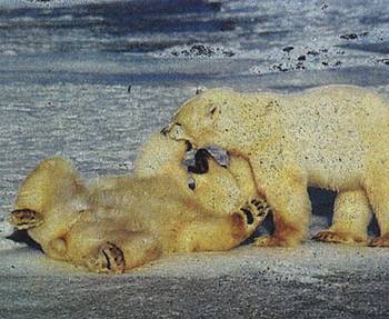兩只頑皮的北極熊在冰面上嬉戲 北極夏季的景象