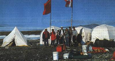 根據(jù)中國(guó)-加拿大恐龍合作考察計(jì)劃,董枝明和余超兩同志于1986年與5位加拿大科學(xué)家同赴加拿大北極地區(qū)考察25天,這是我國(guó)科學(xué)考察人員第一次進(jìn)入北極地區(qū)。