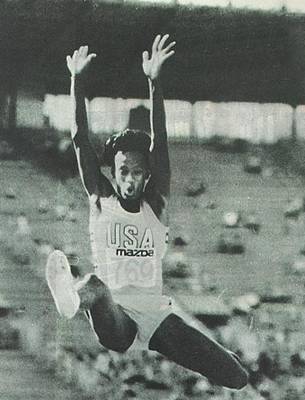 美國杰出的女子十項全能運動員杰基-喬 伊娜是第一個突破7000分大關(guān)的女運動員