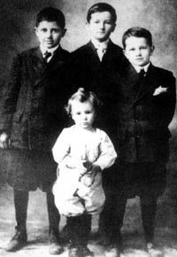 小?思{(中)與弟妹們 | ?思{,1897年生美國南方。一次大戰(zhàn)時在加拿大空軍服役。1926年開始出版小說。從第三部小說《沙多里斯》(1929年)起,形成自己獨特的主題、題材與風(fēng)格,先后創(chuàng)作了十幾部長篇小說與幾十篇短篇小說。1949年,“因為他對當(dāng)代美國小說所做的強有力的和藝術(shù)上無與倫比的貢獻”,被授予諾貝爾文學(xué)獎,在西方文壇上被看作“現(xiàn)代的經(jīng)典作家”。他的重要作品有《喧嘩與騷動》(1929)、《我禰流之際》(1930)、《八月之光》(1932)、《斯諾普斯三部曲》(1940-1959)等。1962年7月6日逝世。 |  | | 在好萊塢時與友人談笑風(fēng)聲 |