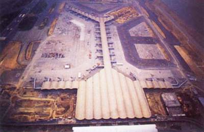 香港國際機(jī)場(chǎng)于1998年7月6日香港回歸周年之際投入使用。 作為最年輕、也是亞洲唯一中選的建筑,香港國際機(jī)場(chǎng)被評(píng)為“20世紀(jì)全球十大建筑”之一。由美國1999建筑博覽會(huì)評(píng)選出來的十大建筑,全部是“上一代人夢(mèng)寐以求,但以當(dāng)時(shí)的技術(shù)及科技不可能實(shí)現(xiàn)的理想”,同時(shí)也標(biāo)志著本世紀(jì)的科學(xué)成就。它們是:美國金門大橋、美國跨州高速公路、紐約帝國大廈、紐約世貿(mào)中心、拉斯維加斯胡佛水壩、英法海底隧道、悉尼歌劇院、巴拿馬運(yùn)河、埃及阿斯旺水壩,以及香港國際機(jī)場(chǎng)。 耗資1550億港幣的香港國際機(jī)場(chǎng)總面積達(dá)1248公頃,在彈丸之地的香港是個(gè)奇跡;單是客運(yùn)大樓就占51萬平方米,相當(dāng)于86個(gè)足球場(chǎng),是世界最大的建筑物之一。主樓的設(shè)計(jì)者霍士達(dá)爵士(norman forster,也是香港匯豐銀行總廈的設(shè)計(jì)者)說,他的靈感來自香港人的精神。  國家主席江澤民出席香港新機(jī)場(chǎng)揭幕儀式