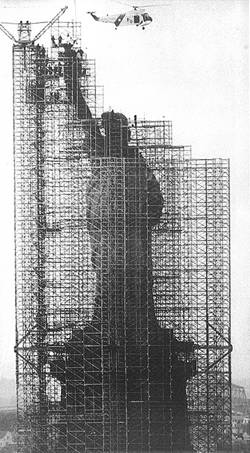 中午時分,里根會見了法國總統(tǒng)密特朗,開誠布公地討論了武器控制問題。今天美國領(lǐng)導(dǎo)人怎么能拒絕會見法國總統(tǒng)呢?如果100年前,法國不送來這個銅像,就不會有今天的慶祝節(jié)日了。 經(jīng)過幾個月的整修,自由女神又同游人見面了。帶著諷刺意味且又合理的是,她接待的第一位游客不是美國人而是英國人。等候參觀雕像的隊伍長得讓人難以置信,炎熱的天氣這時華氏90度,令人難以忍受,把游覽日期訂在7月5日真是個無法形容的叫人嘔氣的主意。  自由女神的百年
