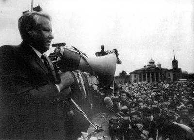 8.19事件中,俄羅斯總統(tǒng)葉利欽在俄羅斯政府大廈舉行記者招待會(huì),宣讀了《告俄羅斯公民書》,宣布緊急狀態(tài)委員會(huì)是“非法的”,要求立即召開蘇聯(lián)非常人代會(huì),并呼吁“俄羅斯公民對(duì)叛亂分子給予應(yīng)有的回?fù)?rdquo; 1991年8月19日,蘇聯(lián)副總統(tǒng)亞納耶夫發(fā)布命令宣布,戈?duì)柊蛦谭蛴捎诮】翟蛞巡荒苈男锌偨y(tǒng)職務(wù),自即日 起由他本人代行總統(tǒng)職務(wù)。同時(shí)宣布成立國(guó)家緊急狀態(tài)委貝會(huì),行使國(guó)家全部權(quán)力,在蘇聯(lián)部分地區(qū)實(shí)施為期6個(gè)月的緊急狀 態(tài),國(guó)家緊急狀態(tài)委員會(huì)由亞納耶夫、總理帕夫洛夫、國(guó)防會(huì)議第1副主席巴克拉諾夫、國(guó)防部長(zhǎng)亞佐夫、內(nèi)務(wù)部長(zhǎng)普戈、國(guó) 家安全委員會(huì)主席克留奇科夫等8人組成。該委員會(huì)發(fā)布《告蘇聯(lián)人民書》,稱戈?duì)柊蛦谭虺珜?dǎo)的改革政策已經(jīng)走入死胡同, 國(guó)家處于極其危險(xiǎn)的嚴(yán)重時(shí)刻。委員會(huì)連續(xù)發(fā)布兩道命令,要求各級(jí)政權(quán)和管理機(jī)關(guān)無條件地實(shí)施緊急狀態(tài),并暫時(shí)只允許《 真理報(bào)》等9家報(bào)紙發(fā)行。 同日,蘇聯(lián)內(nèi)閣舉行會(huì)議,表示支持緊急狀態(tài)委員會(huì)作出的決定。 俄羅斯聯(lián)邦總統(tǒng)葉利欽拒不服從緊急狀態(tài)委員會(huì)的命令,號(hào)召舉行政治罷工,抗議亞納耶夫等人發(fā)起的行動(dòng)。20日 ,莫斯科實(shí)行宵禁。21日,戈?duì)柊蛦谭蛐家淹耆刂屏司謩?shì),并恢復(fù)了一度中斷的與全國(guó)的聯(lián)系,蘇聯(lián)國(guó)防部決定撤回部 署在實(shí)施緊急狀態(tài)地區(qū)的部隊(duì)。蘇聯(lián)內(nèi)閣發(fā)表聲明,表示完全執(zhí)行總統(tǒng)的指示。 22日,戈?duì)柊蛦谭驈目死锩讈喎祷啬箍疲⒓闯蜂N了由國(guó)家緊急狀態(tài)委員會(huì)或個(gè)別成員頒布的一切決定;解除該 委員會(huì)所有成員的現(xiàn)任職務(wù);任命了新的國(guó)防、內(nèi)務(wù)部長(zhǎng)和國(guó)家安全委員會(huì)主席等。這次事變后,蘇聯(lián)局勢(shì)更加復(fù)雜化。俄羅 斯聯(lián)邦等乘機(jī)從聯(lián)盟中央手中接管了原屬中央的一系列政治、經(jīng)濟(jì)、甚至軍事部門和權(quán)力。蘇聯(lián)一些地方出現(xiàn)反共浪潮。 8月24日,戈?duì)柊蛦谭蛐嫁o去蘇共總書記職務(wù),建議蘇共中央自行解散,下令停止各政黨和政治運(yùn)動(dòng)在軍隊(duì)、內(nèi) 務(wù)部等各級(jí)軍事機(jī)關(guān)和國(guó)家機(jī)關(guān)中的活動(dòng)。他還頒布命令,組成以西拉耶夫?yàn)槭椎奈瘑T會(huì)治理國(guó)家經(jīng)濟(jì)。