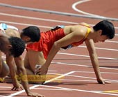 2008年北京奧運會預賽場上預備動作 起跑后的表情