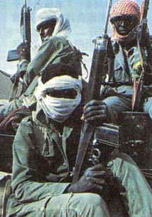 乍得叛軍身穿適合沙漠作戰(zhàn)的服裝 1983年8月16日,法國(guó)建立外交關(guān)系" target="_blank">法國(guó)派遣數(shù)百名士兵到它的前殖民地乍得 去支持政府,并與據(jù)報(bào)道是由利比亞支持的游擊隊(duì)?wèi)?zhàn)斗。里根政 府已承諾送給乍得總統(tǒng)黑森-哈布雷價(jià)值2500萬(wàn)美元的軍事援助。 游擊隊(duì)和政府部隊(duì)一直在乍得北部的幾個(gè)城鎮(zhèn)打著拉鋸戰(zhàn)。游擊 隊(duì)此前不久又重新占領(lǐng)了法亞--拉若綠洲。 哈布雷在記者招待會(huì)上說:“我們請(qǐng)非洲,拉丁美洲,亞洲 和歐洲的所有國(guó)家?guī)椭У谜?dāng)防衛(wèi)。利比亞是侵略者。”哈布 雷還指責(zé)利比亞領(lǐng)導(dǎo)人穆阿瑪爾-卡扎菲上校通過調(diào)遣大量的飛 機(jī)、坦克、大炮,“使用蘇聯(lián)的戰(zhàn)術(shù)”來(lái)進(jìn)攻法亞--拉若綠洲。他說: “這是滅絕種族的屠殺,我們只有在關(guān)于二次大戰(zhàn)的影片中見到 過這樣的屠殺。”利比亞新聞社否認(rèn)利比亞卷入乍得內(nèi)戰(zhàn)。