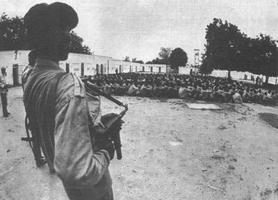一個(gè)衛(wèi)兵在首都恩賈梅納看守被俘的叛軍