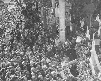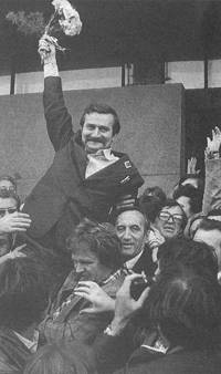 瓦文薩當(dāng)選團結(jié)工會全國委員會主席時的情景