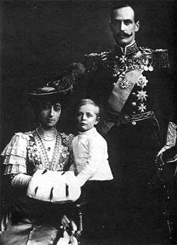 哈康國王與王后莫德及年幼的王太子奧拉夫在一起