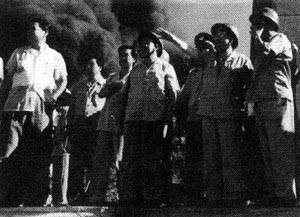李鵬總理親臨黃島火災(zāi)現(xiàn)場,指揮滅火。