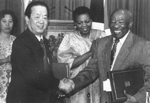 中非正式簽署關(guān)于建立外交關(guān)系的聯(lián)合公報 1998年1月1日,我國與南非建立外交關(guān)系。 南非,位于非洲大陸最南端,有“彩虹之國”美稱。面積122.1萬多平方公里,人口4360萬人。其中黑人3000多萬,白人510萬,亞洲人99萬人和其他有色人種。官方語言為英語和南非荷蘭語。行政首都比勒陀利亞,立法首都開普敦,司法首都布隆方丹。南非曾是世界上種族制度最多的國家。經(jīng)過黑人的長期斗爭,南非在廢除種族制度后,于1994年4月26—29日舉行了多種族選舉,非國大主席曼德拉當(dāng)選為南非總統(tǒng),F(xiàn)任南非總統(tǒng)姆貝基。