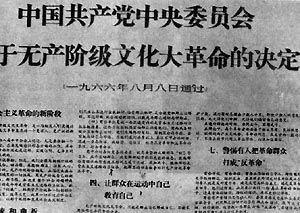 1966年8月8日,中共中央主席毛澤東主持的八屆十一中全會,通過《關(guān)于無產(chǎn)階級文化大革 命的決定》(即《十六條》)。這是繼“五·一六通知”后,從全局指導(dǎo)“文化大革命”的又 一個綱領(lǐng)性文件。 決定共分十六條,闡述了文化大革命的性質(zhì)、目的、斗爭對象,及采取的方式和有關(guān)政治規(guī)定。決定說:“當(dāng)前開展的無產(chǎn)階級文化大革命,是一場觸及人們靈魂的大革命,是我國社會主義革命發(fā)展的一個更深入、更廣闊的新階段。”“在當(dāng)前,我們的目的是斗垮走資本主義道路的當(dāng)權(quán)派,批判資產(chǎn)階級的反動學(xué)術(shù)‘權(quán)威’,批判資產(chǎn)階級和一切剝削階級的意識形態(tài)”。決定說,黨的領(lǐng)導(dǎo)敢不敢放手發(fā)動群眾,將決定這場文化大革命的命運。決定申明:“黨中央對各級黨委的要求,就是要堅持正確領(lǐng)導(dǎo)‘敢’字當(dāng)頭,放手發(fā)動群眾,改變那種處于軟弱的無能的狀態(tài)。”決定強調(diào):“無產(chǎn)階級文化大革命,只能是群眾自己解放自己,不能采取任何包辦代替的辦法。”“要充分運用大字報、大辯論這些形式,進行大鳴大放,以便群眾闡明正確的觀點,批判錯誤的意見,揭露一切牛鬼蛇神。”。決定說,運動的重點是整黨內(nèi)那些走資本主義道路的當(dāng)權(quán)派。”必須嚴格區(qū)別各類不同性質(zhì)的矛盾,正確處理人民內(nèi)部矛盾。要用文斗,不用武斗。警惕有人把革命群眾打成“反革命”。決定說:“文化革命小組、文化革命委員會和文化革命代表大會是群眾在共產(chǎn)黨領(lǐng)導(dǎo)下自己教育自己的最好的新組織形式。它是我們黨同群眾密切聯(lián)系的最好的橋梁。它是無產(chǎn)階級文化革命的權(quán)力機構(gòu)。”決定還就教學(xué)改革、同社會主義教育運動相結(jié)合的部署問題,抓革命促生產(chǎn)等作了規(guī)定。決定最后指出,毛澤東思想是無產(chǎn)階級文化大革命的行動指南。