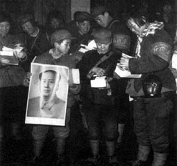 在廣州火車站,解放軍的“毛澤東思想宣傳隊”在頌唱《毛主席語錄》