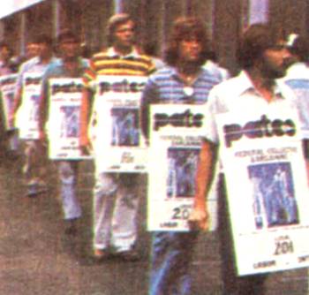 被里根解雇的帕特科的工作人員 1981年8月6日,里根總統(tǒng)解雇了1.2萬(wàn)名聯(lián)邦航空管理人員,因?yàn)檫@些人持續(xù)3天的罷工使得每天1.4萬(wàn)多班次的飛行中有大約一半停飛。 運(yùn)輸部長(zhǎng)德魯-劉易斯說(shuō):“依我看這不是罷工的形勢(shì)。這已結(jié)束。我們所關(guān)心的是重新建立制度。” 盡管聯(lián)邦法官哈羅德-格林下達(dá)了讓工作人員返回工作崗位的命令,并因衛(wèi)會(huì)主席羅伯特-伊-玻利不服從命令而每天罰款1000美元,這些機(jī)場(chǎng)的管理人員還是舉行了罷了。 通過(guò)解雇參加罷工的機(jī)場(chǎng)的管理人員,政府成功地平息了自 1970年167000名郵政工人罷工以來(lái)的最大聯(lián)邦雇員大罷工。 為了反抗法官的命令及工會(huì)主席叫他們返回工作的主張,代 表機(jī)場(chǎng)管理人員的工會(huì)組織--帕特科的官員們?cè)?jīng)說(shuō)過(guò):政府最 后要同他們就下列問(wèn)題達(dá)成協(xié)議:“提高工資,縮短每周工作時(shí)間以及不管年齡大小工作20年后退休等。沒(méi)有我們,運(yùn)輸系統(tǒng)就會(huì)癱瘓,這一點(diǎn)他們是知道的。”一位工會(huì)的官員說(shuō),“現(xiàn)在機(jī)場(chǎng)指揮塔一片混亂”。但是,雇用機(jī)場(chǎng)管理人員的聯(lián)邦航空局的一位發(fā)言人對(duì)廣泛流傳的有關(guān)機(jī)場(chǎng)指揮塔一片混亂的說(shuō)法,予以 駁斥,他說(shuō)專(zhuān)業(yè)人員正在工作。