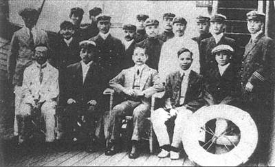 孫中山誕生" target="_blank">孫中山等人由上海經(jīng)臺灣赴日本時在輪船上留影 1913年8月4日,孫中山、胡漢民一行,由福州馬尾乘日輪撫順丸去基隆,5日從基隆換乘日輪信濃丸赴日本。 9日到達(dá)神戶,18日轉(zhuǎn)抵東京。黃興繼孫之后,于27日到達(dá)東京,化名岡本義一。先后到達(dá)日本的還有李烈鈞、柏文蔚、 居正、謝持、許崇智、田桐、廖仲愷、熊克武、李根源、鈕永建、林虎、冷愈、程潛、方聲濤、鄒魯、譚人鳳、李書城等人。 陳其美、戴季陶、朱執(zhí)情等在國內(nèi)失敗后,也相繼到日本。 黨人出逃得到日本軍人協(xié)助。日駐華武官青木宣純致電參謀總長說:“無論是站在人道上或道義上,均應(yīng)同情南方國 民黨,并盡可能予以援助,至少應(yīng)給予充分方便。”倪嗣沖為此致函日本駐南京領(lǐng)事,要求派兵到日本商船搜捕李烈鈞等。日 方表示“礙難認(rèn)可”。
