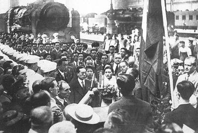 泳壇名將楊秀瓊 1936年8月,中國派出了一個由93人組成的代表團參加了柏林第十一屆奧運會。男女短跑全國紀錄保持者劉長春和李森及有“ 美人魚”之稱的泳壇名將楊秀瓊,全國自行車冠軍華僑運動員何浩華等均在預(yù)賽中被淘汰;足球隊首戰(zhàn)強手英國隊,以0:2被淘汰:男籃在小組比賽中,4戰(zhàn)4負;只有撐竿跳高名將符保盧奮力一躍,成為進入決賽的唯一的中國運動員。符保盧曾以4.5米的成績創(chuàng)中國撐竿跳高全國最高紀錄。 盡管中國選手比賽成績不佳,但值得大書一筆的是參加這屆奧運表演的中國武術(shù)隊卻轟動柏林,風靡德國。