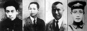 從左至右依次為:周恩來、葉挺、朱德、劉伯承