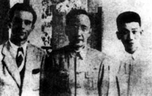 1938年與郭沫若(中)、埃德郁曼陀。加·斯諾合影。
