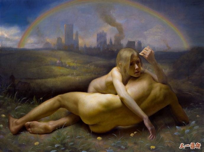 這幅畫的背景已是現(xiàn)代城市的煙囪和陰霾,而畫中的主人公卻還生活在古代的廢土上。亞當·米勒是美國寫實主義畫家的后起之秀,出生于俄勒岡州,是佛羅倫薩藝術(shù)家安吉爾的學徒,深受巴洛克藝術(shù)的影響。