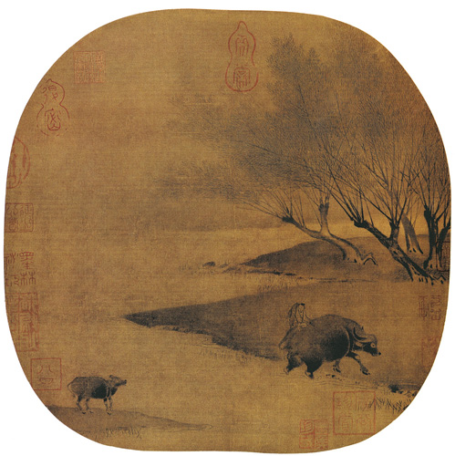 此圖原載《歷代名畫集勝冊》第一冊,見《虛齋名畫錄》,簽題馬遠(yuǎn)作。但此畫與馬遠(yuǎn)的風(fēng)格相去甚遠(yuǎn),因此題為無名氏作。