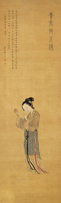 清 陳清遠(yuǎn) 絹本設(shè)色 縱115.5厘米 橫35.5厘米 清華大學(xué)美術(shù)學(xué)院藏