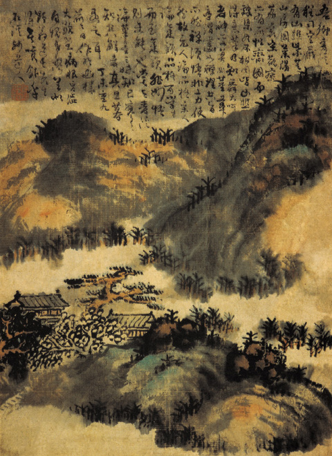清 髡殘 紙本設(shè)色 縱41.6厘米 橫30.4厘米 南京博物館藏