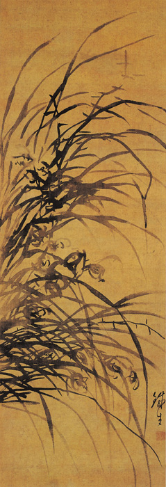 此圖繪蘭一叢,有的已然盛開,有的含苞待放,筆墨粗放率直,蘭葉縱肆飄灑,繁復蔥蘢而紊絲不亂,構(gòu)圖新穎,取斜入之勢,別具風格。