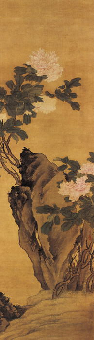 此圖繪嬌艷盛開(kāi)的牡丹,有一叢在巖石之上怒放,一叢在巖石下。此畫(huà)反映了畫(huà)家長(zhǎng)期而細(xì)微的生活洞察力,因而他筆下的動(dòng)物都顯得個(gè)性鮮明、生趣盎然。較之前代的花鳥(niǎo)畫(huà)更富于生命力,為小寫(xiě)意在鳥(niǎo)畫(huà)語(yǔ)言的豐富與創(chuàng)新作出了卓越貢獻(xiàn)。