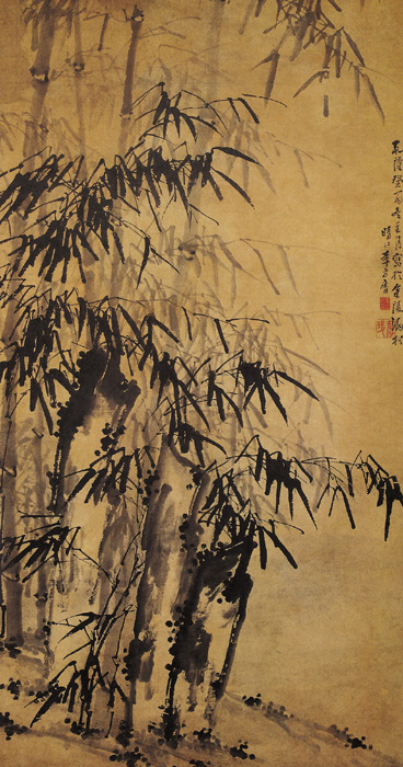 此圖繪新篁數(shù)竿,枝葉瀟灑自如,筆法迅捷挺健,具名款。此圖蕭疏清雋,縱逸不拘于法,深得寫生之妙趣。