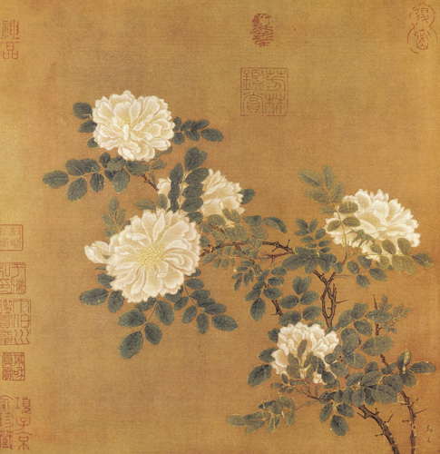 此圖亦是散頁,不知原載何冊,上有“馬遠(yuǎn)”二字簽名。馬遠(yuǎn)所畫的花卉,見者不多。此幅畫盛放的白薔薇,一筆不茍,可稱是宣和畫院的嫡傳子孫。如果不是有他的題名,我們不會以它為馬遠(yuǎn)所作的?梢娔苷咚鶎,是無所不臻其極的。