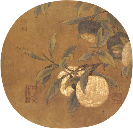 此圖不知原載何冊(cè),畫(huà)幅上有“馬麟”二字的題名。觀馬麟的題名,和馬遠(yuǎn)的絕不相同,其畫(huà)的風(fēng)格亦甚相異。麟于花卉尤工。曾見(jiàn)其梅花一軸,枝干蒼古,而花苞鮮妍,似欲噴出清香來(lái)。此綠橘圖,亦正足見(jiàn)其是寫(xiě)物的妙手也。