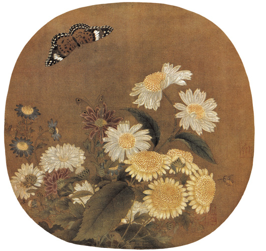 此圖原載《四朝選藻冊(cè)》,見(jiàn)《石渠寶笈續(xù)編》。簽題朱紹宗作。畫(huà)幅上題一“朱”字,其下已無(wú)字跡。今從《四朝選藻冊(cè)》,作朱紹宗作!秷D繪寶鑒》云:朱紹宗工人物貓犬花禽,描染精邃遠(yuǎn)過(guò)流輩。隸籍畫(huà)院。《繪事備考》云:朱紹宗隸籍院中。當(dāng)補(bǔ)祗候,而恬退不仕。日作墨畫(huà)數(shù)幅,以為酒資。同列有供御筆墨,輒攜酒就商焉。