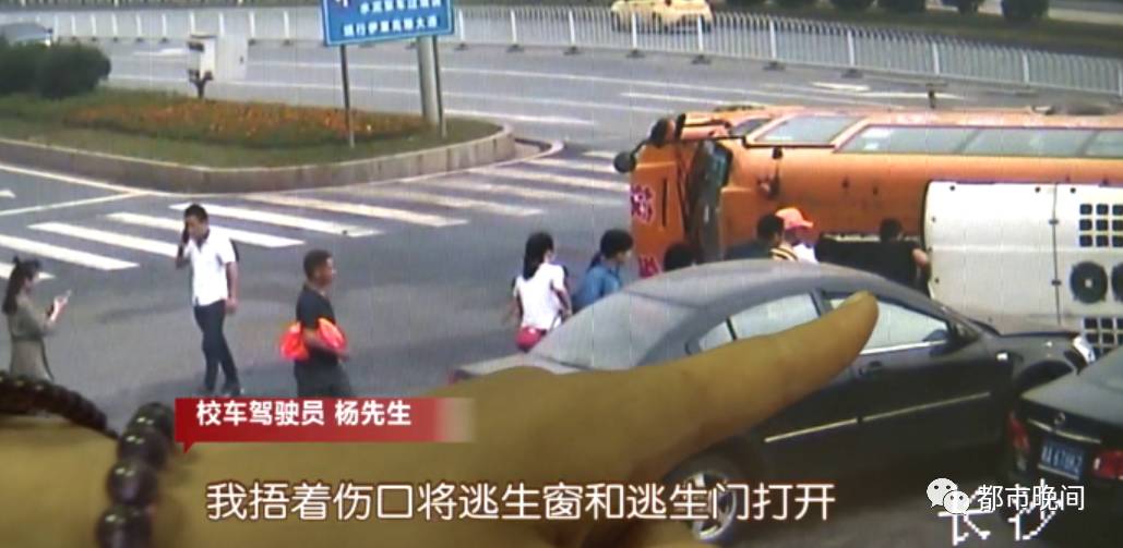 一輛越野車突然闖紅燈直接追尾校車,導致載有12名幼兒的校車側(cè)翻。在這危急一刻,眾多的熱心市民,過路小車司機第一時間參與到救援當中。