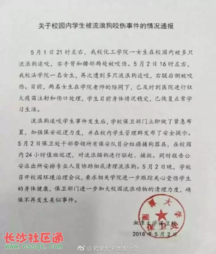 流浪犬傷人事件發(fā)生后,湘潭大學(xué)很快做出回應(yīng):