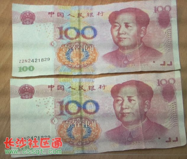 瞧瞧這兩張百元鈔票,看上去沒有啥特別的?墒悄僮屑毧纯粹n票左下角的編號,都是Z2N2421829。編號重復,說明至少有一張是假幣。但事實是,這兩張都是假幣!這是哈爾濱市公安局平房分局新疆街派出所受理案件時發(fā)現(xiàn)的。報案的一家藥店的店員說,錢是10月13日收的,當時有一男一女來買藥。