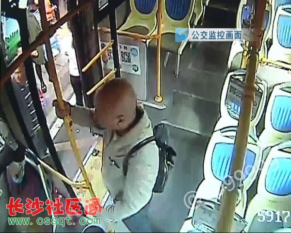 當(dāng)天中午11點(diǎn)41分,這輛公交車靠站后,乘客都順序上了車,一位老太太在把小孫女放到前排座位坐下后,站在了車廂通道上,殊不知她的背包擋住了其他乘客的去路。