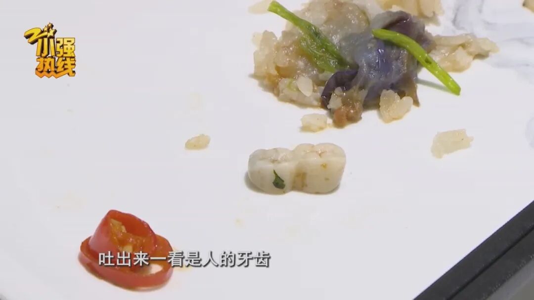 “第二個菜是醬炒茄子,我的一個同伴吃著吃著吃出了兩顆并排的牙齒,她就吐出來,吐出來一看是人的牙齒,感覺特別惡心,她嘔吐了好幾次!崩钕壬貞浾f。