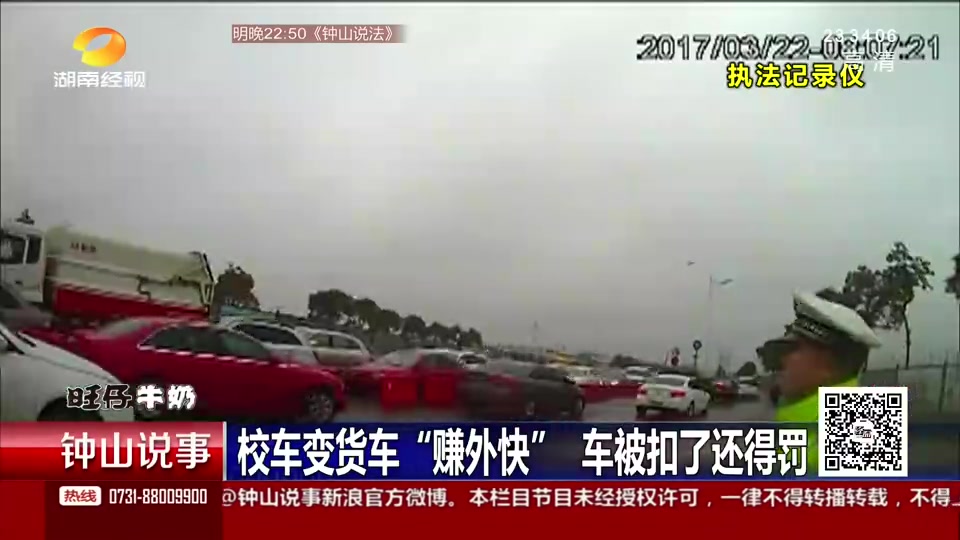 湘潭某校車變貨車“賺外快” 車被扣了還得罰