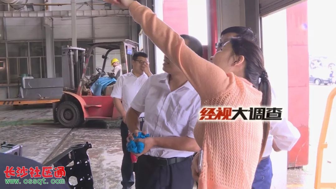 湖南省環(huán)保廳大氣處副主任科員何莎發(fā)現(xiàn):這兩個就是噴漆和烤漆的車間,按我們的要求,應(yīng)該整個要密閉作業(yè),通過處理設(shè)施,把廢氣吸出去處理掉再排放 ,但是我們剛來的時候他們門是敞開的,人在里面作業(yè),可以聞到氣味。
