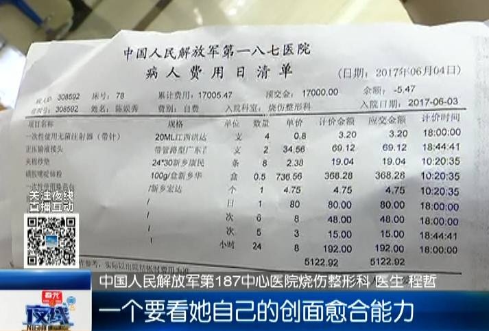 度過這危險(xiǎn)期就要十萬塊錢,然后后面從里面搬出來以后,她的費(fèi)用可能會(huì)少一些,但是因?yàn)樗模C傷)面積大,一個(gè)要看她自己的創(chuàng)面愈合能力,然后看她的營養(yǎng)情況,起碼得五十萬,初步估計(jì)的話。