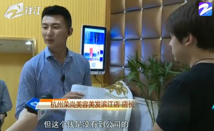 杭州榮尚美容美發(fā)濱江店 店長(zhǎng):這個(gè)章的確是店里的, (那章是店里的,蓋在合同上,不管怎么說(shuō),肯定還是和店里有關(guān)系的。)這個(gè)是我們應(yīng)該處理的,但是錢有沒(méi)有到公司, 我們要求確認(rèn)一下,(不管這個(gè)錢怎么樣,這個(gè)也是你們公司內(nèi)部應(yīng)該要處理好的事。)