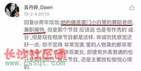 還有網(wǎng)友爆料她是廈門小白鷺的舞蹈老師兼職模特。因神似baby被稱為是《非常完美》的最美女嘉賓。