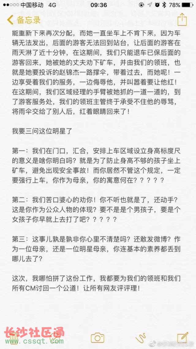 你以自己是明星,自己是女性游客來(lái)對(duì)我們演職人員拳打腳踢!事后倒打一耙!發(fā)至微博!請(qǐng)你拿出你是公眾人物的素質(zhì)來(lái)!我們想拍照取證!被你丈夫攔下!我們想錄像保存!被你丈夫堵住!請(qǐng)告訴我們!我們?cè)趺幢Wo(hù)我們的演職人員?