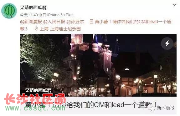 上海迪士尼方的工作人員也發(fā)表長(zhǎng)文懟了回去:“黃小蕾,請(qǐng)你給我們的CM(編者注:演職人員)和lead一個(gè)道歉!”