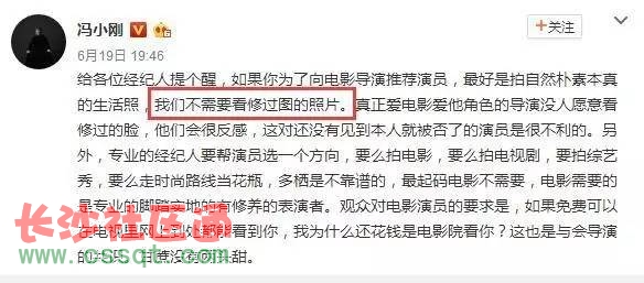 給各位經(jīng)紀人提個醒,如果你為了向電影導演推薦演員,最好是拍自然樸素本真的生活照,我們不需要看修過圖的照片。真正愛電影愛角色的導演沒人愿意看修過的臉,他們會很反感,這對還沒有見到本人就被否了的演員是很不利的……